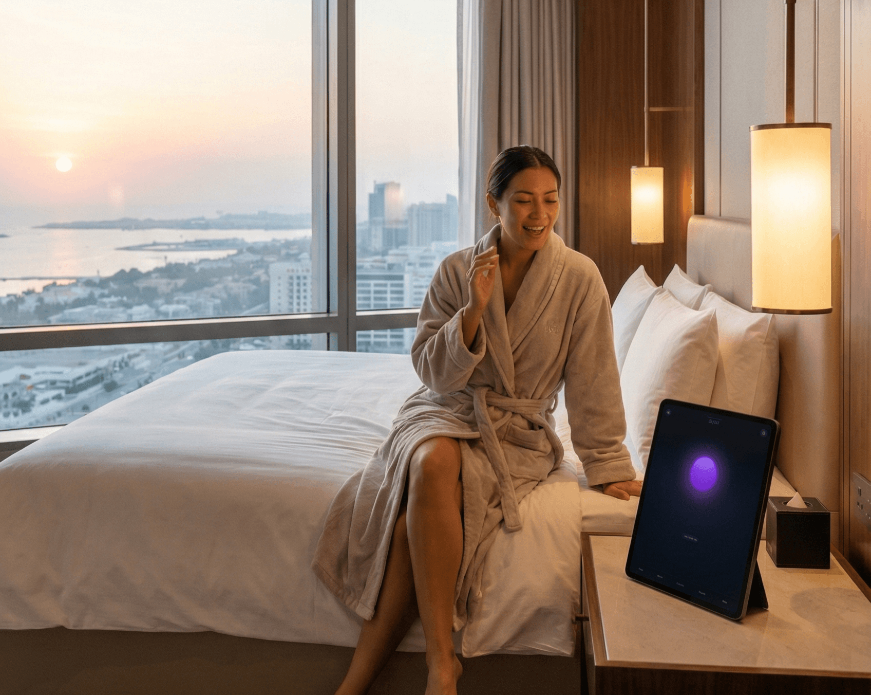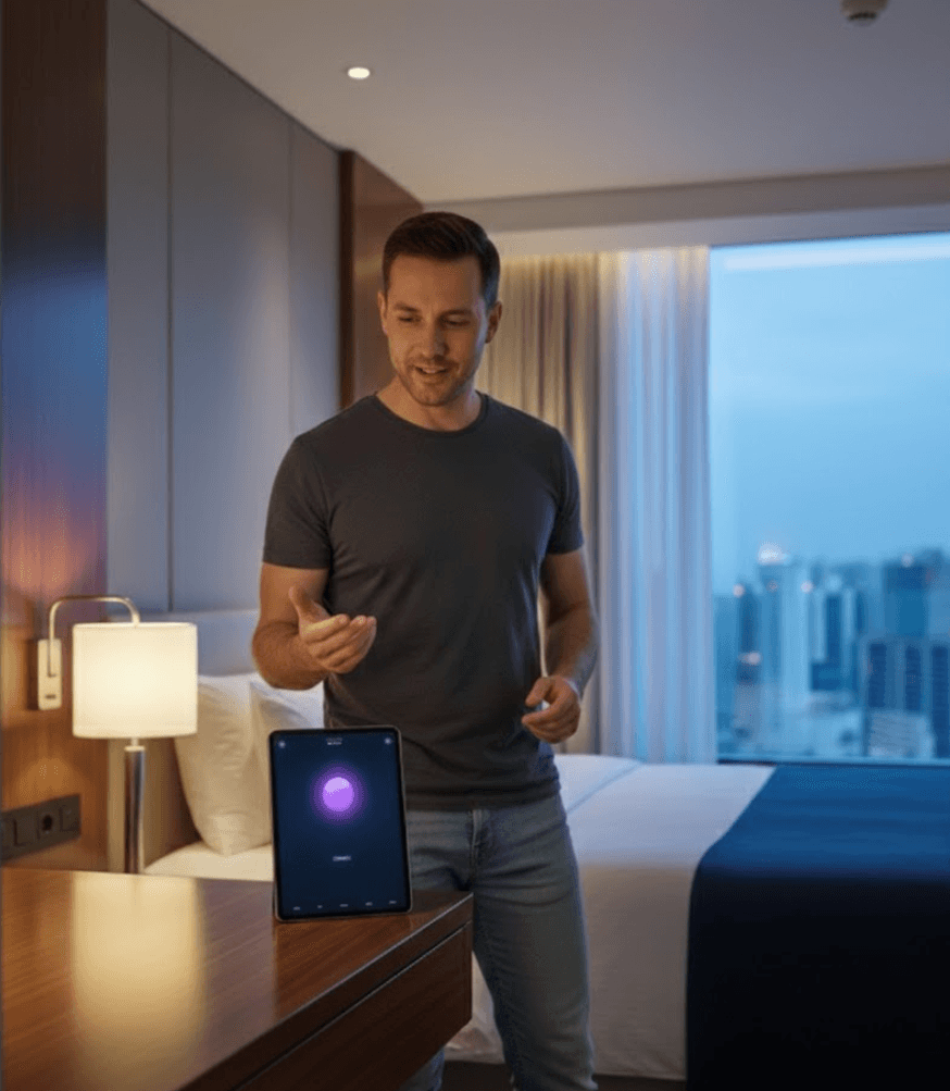 Immediate voice-first assistance for WiFi, amenities, and check-out—answering guest needs the second they arise.
